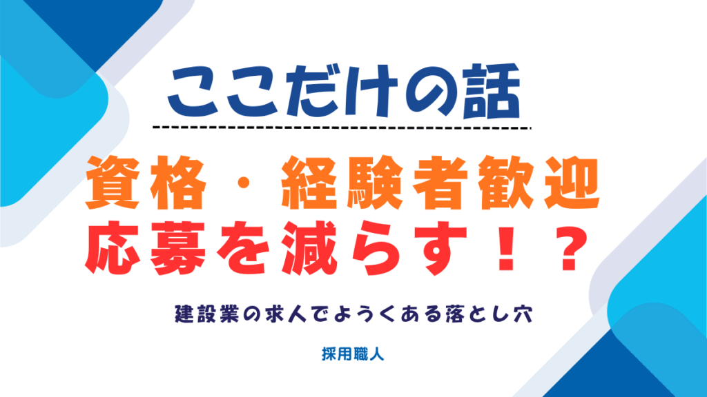 「資格・経験者歓迎」が応募を減らす。建設業の求人でよくある落とし穴