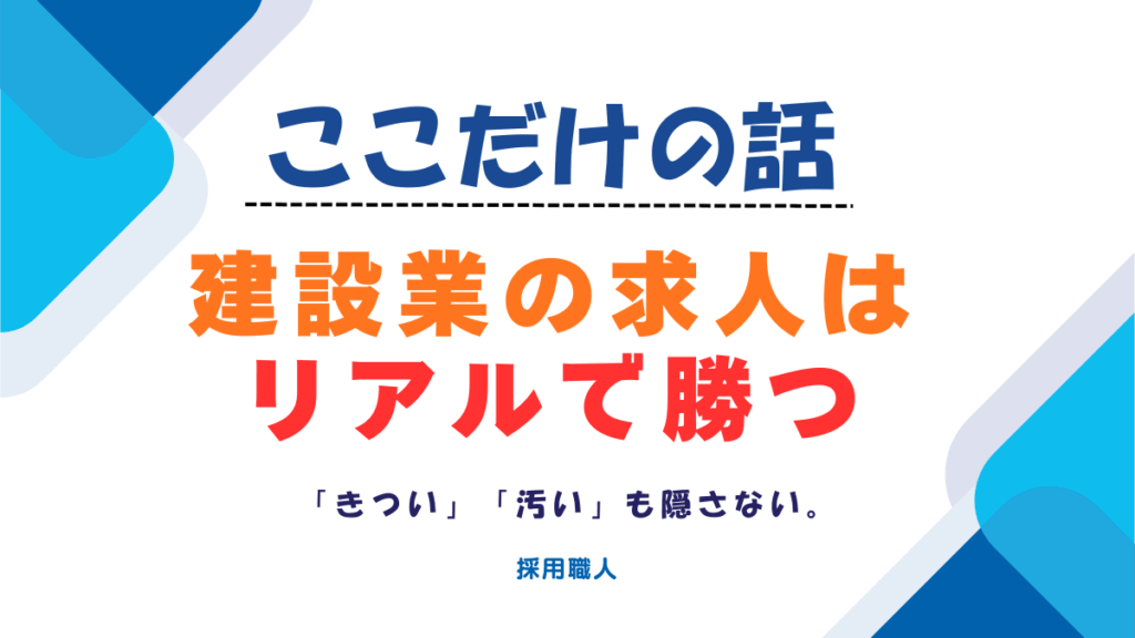 「きつい」「汚い」も隠さない。建設業の求人は“リアル”で勝つ